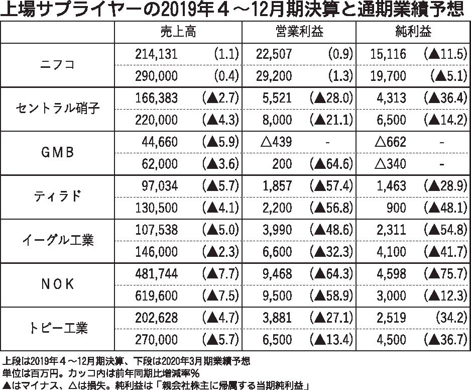 上場サプライヤーの2019年4~12月期決算と通期業績予想