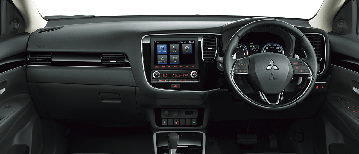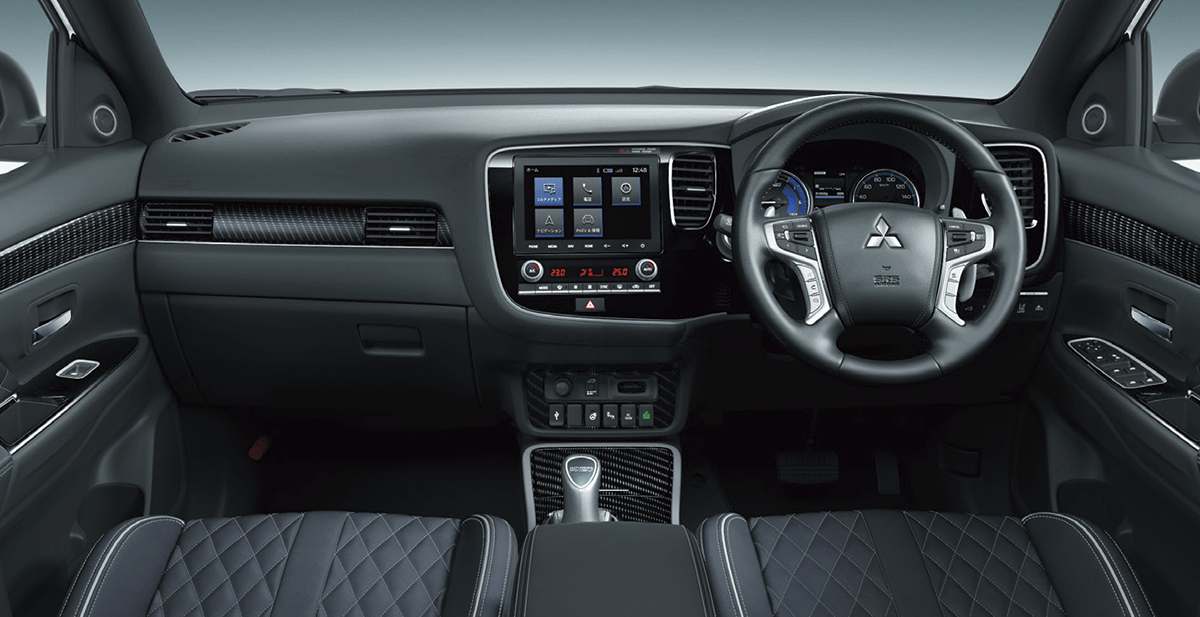 今回の一部改良では、アウトランダーシリーズの車室内形状や、スピーカー位置を考慮して音響チューニングを施すなど、専用設計した「ミツビシパワーサウンドシステム」を設定した。新たに設定した「スマートフォン連携ナビゲーション」は、「アンドロイド・オート」「アップル・カープレー」に対応、USBポートに接続するだけでスマートフォンのアプリケーションを8インチの車載ディスプレイで操作できる。