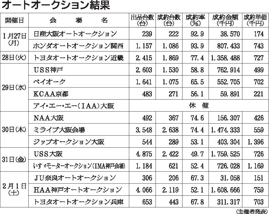 〈オートオークション結果〉