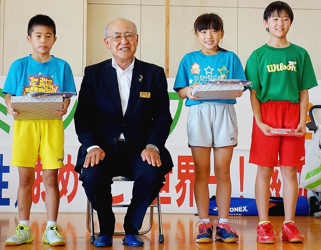 宮城ダイハツ(溝口聡社長)は、「ダイハツ全国小学生ABCバドミントン大会」(ダイハツ工業協賛)で全国優勝を果たした寺島拓夢選手(9)と芳賀凜歩選手(同)、板橋ゆい選手(同)の3人に対し商品券などの記念品を贈った。贈呈式が8日、仙台市若林区...