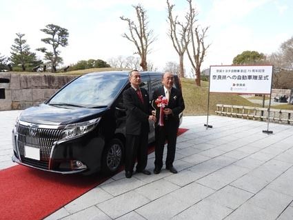 【奈良】奈良トヨタ(菊池攻社長)は2日、創立75周年記念事業の一環として奈良県に「エスクァイア」1台を寄贈した。奈良県は寄贈車両を展示会や会議などを行う複合施設での来賓客の送迎などに活用する。同社はこれまでも県に車両を贈っており、今回で5...