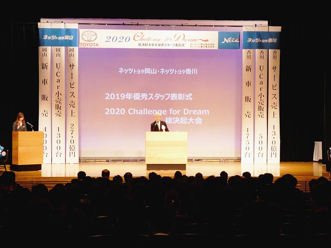 【岡山】ネッツトヨタ岡山(石井清裕社長)とネッツトヨタ香川(同社長)は1月27日、岡山市北区のさん太ホールで「2020 Challenge for Dream 総決起大会」を開催した=写真。今年のスローガン「満足を超える感動を! CS収益...