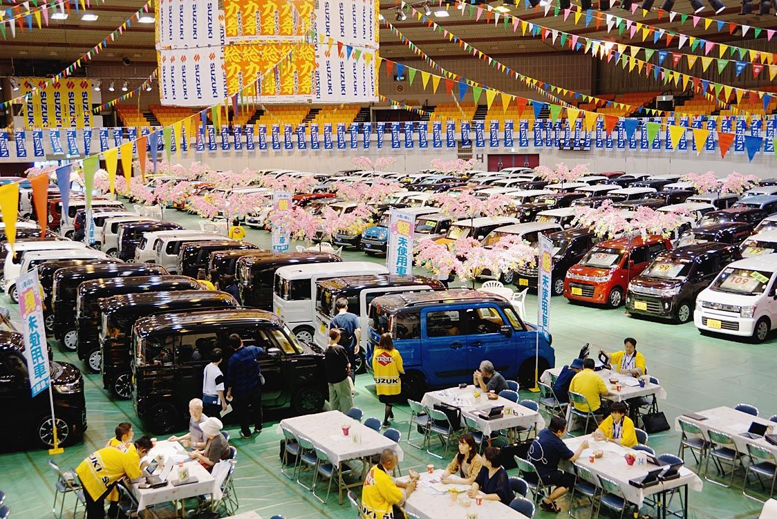 【盛岡】日新スズキ(佐々木仁社長)はこのほど、2日間にわたり滝沢市の岩手産業文化センターアピオで「軽中古車フェア」を開催した=写真。約350台の認定中古車を展示するとともに、新車も会場に並んだ。2日間の実績は、来場者と成約台数ともに、昨年...