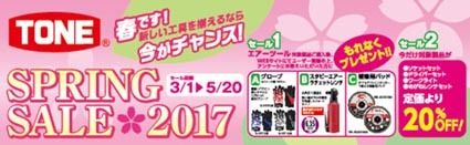 TONEは、5月20日まで「スプリングセール2017」を実施している。ドライバーセットやワークライト、めがねレンチセットなどが通常の20%オフとなるほか、対象となるエアーツールを購入し、ウェブサイトにユーザー登録の上、アンケートに答えると...
