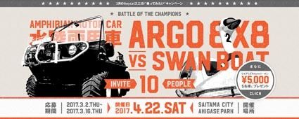 水陸両用車VS人力ボート―。ディー・エヌ・エー(DeNA)の個人間カーシェアリングサービス「エニカ」が、3月度のユーザー向けキャンペーンで、水陸両用車「ARGO」と人力スワンボートによる対決を企画している。 2015年9月のサービス開始直...