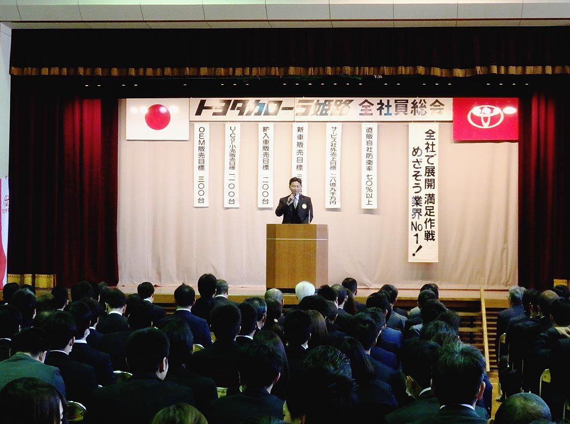 【神戸】トヨタカローラ姫路(瀧川祥也社長)は1月29日、姫路市東市民センターで「全社員総会」を開催した=写真。瀧川社長が事業方針を発表したほか、優秀な成績を収めた社員を表彰した。 全社員総会で瀧川社長は、「昨年は『RAV4』や『カローラ』...