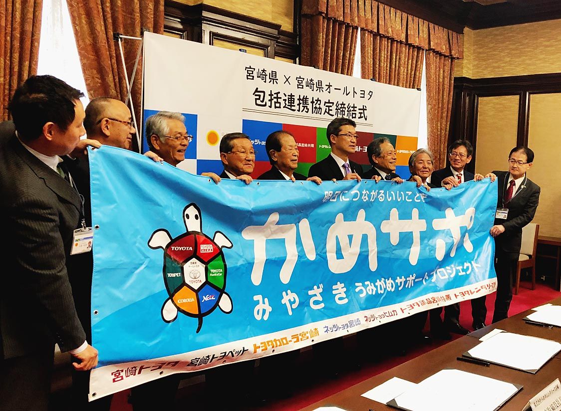 【宮崎】宮崎県オールトヨタ7社と宮崎県は、地域の一層の活性化及び県民サービスの向上を図ることを目的として、包括連携協定を締結した=写真。先月24日に宮崎市の県庁本館で締結式があり、河野俊嗣知事や7社の代表者らが出席した。 県と協定を結んだ...
