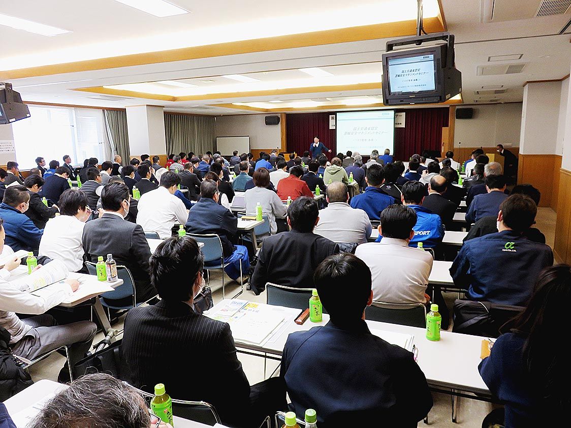 【さいたま】埼玉県トラック協会(鳥居伸雄会長)は、さいたま市大宮区の埼玉県トラック総合会館で「運輸安全マネジメントセミナー(リスク管理・基礎編)」を開催した=写真。あいおいニッセイ同和損害保険が協賛。運行管理責任者ら約160人が参加した。...