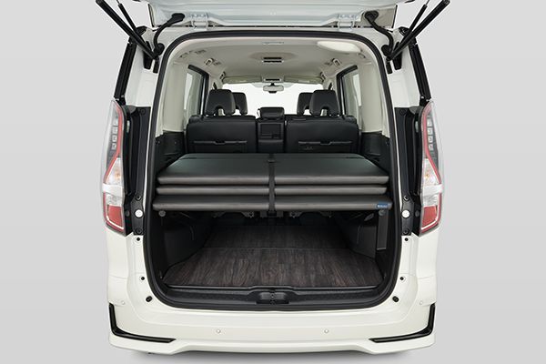 セレナ・マルチベッドは、「セレナ」の「XV」、「ハイウェイスターV」、「e-POWER XV」、「e-POWER ハイウェイスターV」グレードをベースに、オプションの「防水シート」を標準装備し、ベッドボードにはシートと同じ防水性のある素材を採用する。汚れが拭き取りやすく手入れが簡単。また、ウェアや小物などを掛けることができる「サイドマルチパイプラック」や、釣り道具やサーフボードを積載するためのアイテムをオプション設定する。