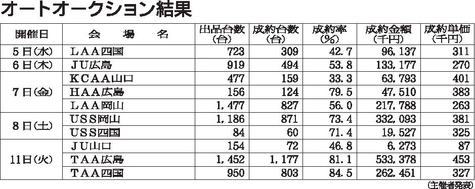 〈オートオークション結果〉中・四国地区 2025/11/25~12/2