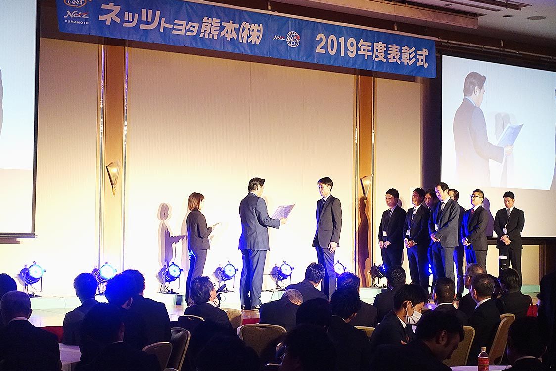 【熊本】ネッツトヨタ熊本(井上雄一朗社長)は3日、熊本市西区のホテルで「2019年度表彰式」を開催した=写真。優秀な成績をあげた社員や店舗を表彰し功績を称えた。また2020年の会社方針の発表も行い、施策の説明や新車、U─Carなど各部門で...