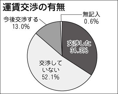 希望運賃 かい離広がる 東京都トラック運送事業協同組合連合会が調査