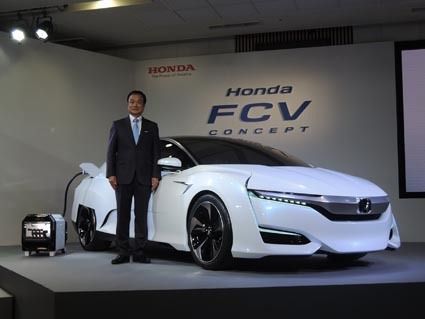 ホンダは17日、2015年度中に日本で市販する予定の新型燃料電池車(FCV)のコンセプトカー「FCVコンセプト」を世界初公開した。新型コンセプトカーに搭載した燃料電池スタックを小型化しながら出力を現行FCVの「FCXクラリティ」より約6割...