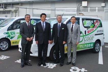 【仙台】日産サティオ宮城(近江克規社長)は7日、商用車型の電気自動車(EV)「e―NV200」11台をみやぎ生協(宮本弘理事長)に納車したと発表した。東北における同型車種の納車は今回が初めて。同日、仙台市内の生協本部で開かれた「出発式」に...