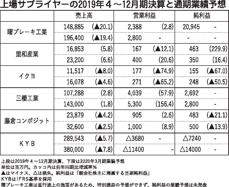 上場サプライヤーの2019年4~12月期決算と通期業績予想