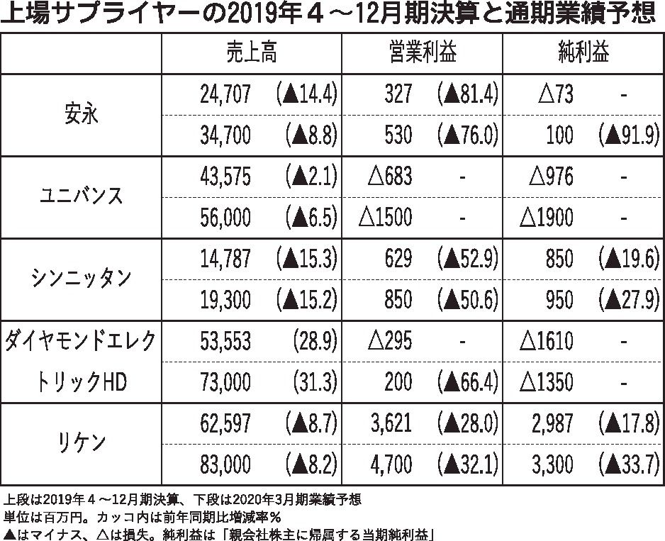 上場サプライヤーの2019年4~12月期決算と通期業績予想