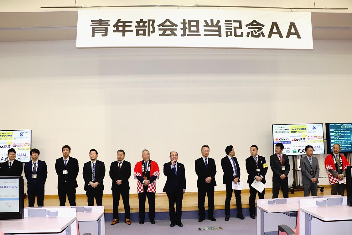 【前橋】群馬県中古車販売商工組合(JU群馬、神保文明理事長)は、「第1900回青年部会・全支部合同記念AA」を開催した=写真。出品台数と成約率ともに目標を上回る実績を収めた。 セレモニーで、JU群馬の神保会長・理事長は「関連協をはじめ福島...