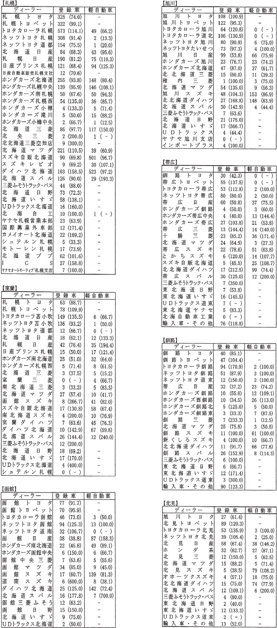1月の道内新車販売台数(登録車と軽自動車の合計)は、前年同月比9・3%減の1万2256台で、4カ月連続してマイナス伸長となった。登録車が7・3%減に対し、軽自動車は12・8%減と2桁の落ち込みが続いた。 自販連がまとめた速報によると、登録...