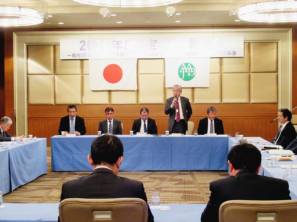 【甲府】日本自動車販売協会連合会(自販連)山梨県支部、山梨県自動車販売店協会(佐々木宏明支部長・会長)などは、甲府市内のホテルで2020年度総会を開催した=写真。役員改選で佐々木会長、野田文久副会長の重任を承認、市場の着実な成長に向けた諸...