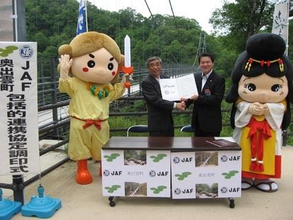 日本自動車連盟(JAF)島根支部(野々村健造支部長)は6月、地域の観光振興と交通安全啓発などを目的にした包括協定を奥出雲町(井上勝博町長)と締結した。これにより、JAF広告媒体で町内の観光施設を紹介するほか、イベントなどでJAFブースの設...