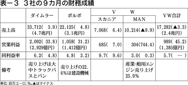 19日付でドイツプレミアム乗用車3社の第3四半期決算を分析したが、今回は欧州に拠点を置き、世界に市場を持つ商用車メーカー3社(ダイムラー、ボルボ、フォルクスワーゲン(VW))の業績を見てみたい。世界最大のトラック・バスメーカーは日米欧に拠...
