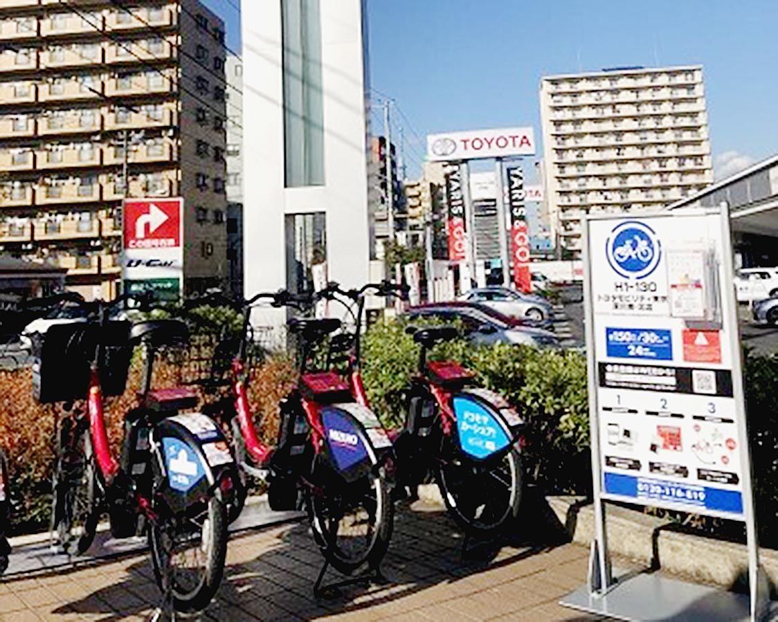 トヨタモビリティ東京(TMT)は「深川南・北店」(江東区千石)敷地内に、24時間自転車の貸し出しや返却が可能な無人の駐輪施設、サイクルポートを設置した=写真。江東区が推進する「江東区臨海部コミュニティサイクル実証実験」に協力するもので、コ...