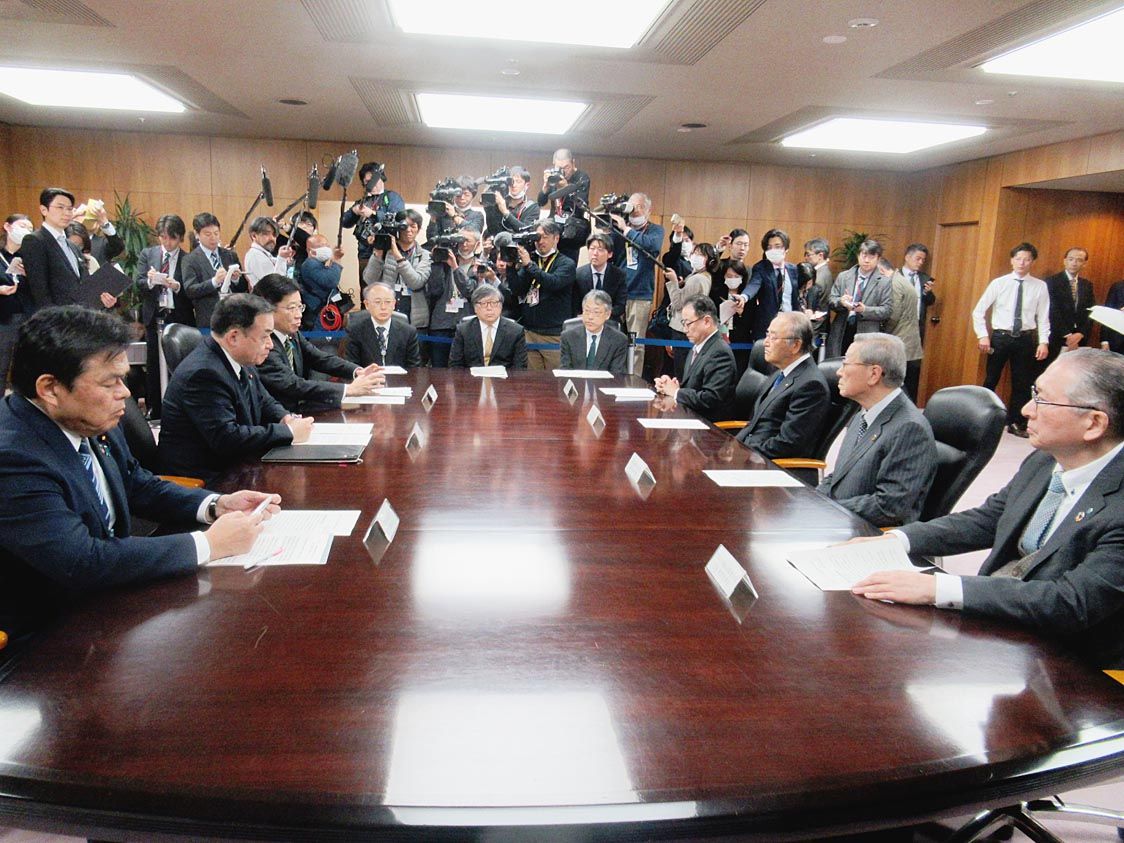 梶山弘志経済産業相、加藤勝信厚生労働相、赤羽一嘉国土交通相は26日、中西宏明経団連会長や神津里季生連合会長などと経産省内で会談し、新型コロナウイルスの感染拡大防止に向け労使団体に協力を要請した=写真。テレワークや時差出勤、休暇を取得しやす...