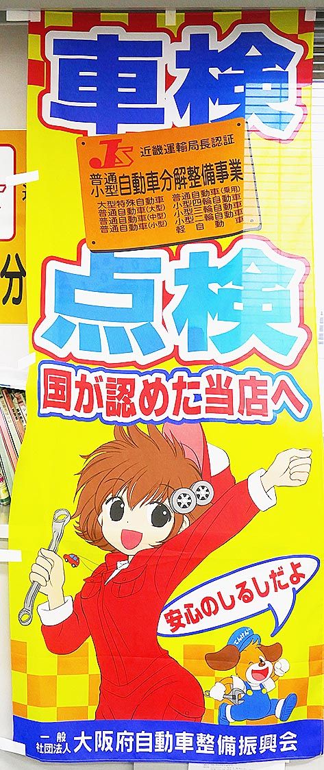 大阪府自動車整備振興会(大整振、山本昇会長)は会員事業者向けにユーザーの入庫を促す「のぼり」を制作した。近畿地区自動車整備連絡協議会のオリジナルキャラクター「つなぎちゃん」のイラストをメインに、分解整備認証を持つ事業者とアピールできる意匠...