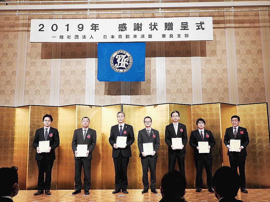 【奈良】日本自動車連盟(JAF)奈良支部(菊池攻支部長)は2月25日、奈良市内のホテルで会員獲得に優秀な成績を収めた企業・個人を表彰する「2019年感謝の会」を開いた=写真。16社が年間基準数を達成し、94人が年間個人優秀賞・優良賞に輝い...