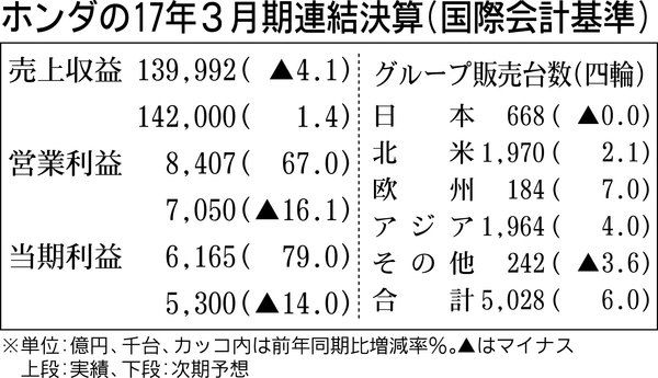 ホンダは28日、2018年3月期の業績が2年ぶりの減益になる見通しを発表した。売上台数の増加やコストダウン効果を見込むものの、前期よりも円高が進むと想定した。 通期の為替見通しを1ドル=105円と前年度に比べ3円の円高に設定した。アジア通...