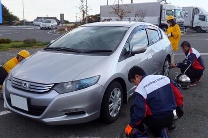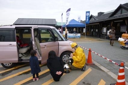 JAF岐阜、道の駅でタイヤ空気圧点検実施