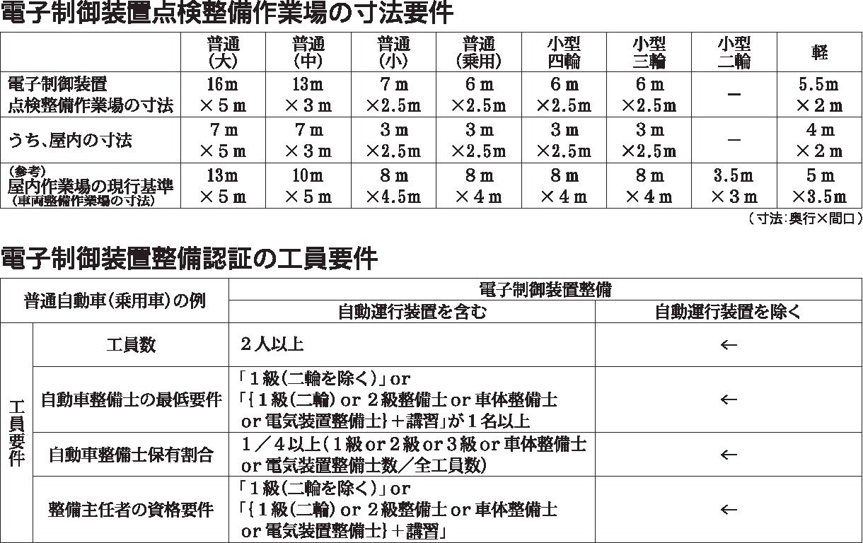 保安基準適合証を交付する指定工場については、4年どころか1年半の猶予しかないとも言える。法施行から1年半後の21年9月には新たな点検基準が施行される予定。指定工場が経過措置の対象となっていなければ、その時点から特定整備対象車の保適証交付ができなくなるからだ。