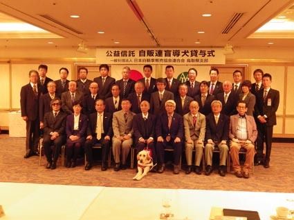 【鳥取】日本自動車販売協会連合会鳥取県支部(大月徹支部長)は6日、鳥取市内のホテルで自販連盲導犬育成基金による盲導犬貸与式を開いた。鳥取での盲導犬貸与は今回が初めて。鳥取市在住の野澤実さんに大月支部長から盲導犬「クク」が手渡された。 同貸...