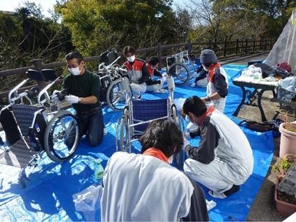 【奈良】損害保険ジャパン日本興亜奈良支店は11月30日、奈良市内の特別養護老人ホーム「かがやきのその」で車いす整備・清掃ボランティアを実施した。全国代理店組織のAIRオートクラブ奈良支部と共同で行い、同社支店や同支部会員ら23人が参加し車...