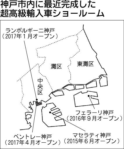 【神戸】神戸市の中心部で、輸入車の超高級車のショールームが相次いで誕生している。ここ数年、輸入車市場の拡大の波を受けてフェラーリ、マセラティが相次いで店舗を開業。今年に入ってからはランボルギーニ、ベントレーがショールームを開設した。いずれ...
