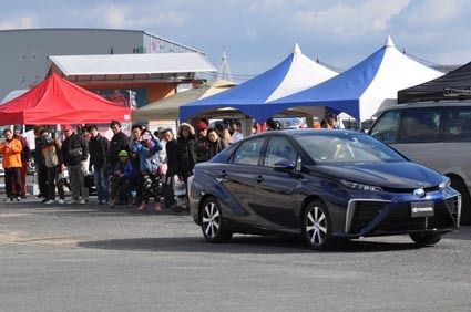 舞洲スポーツランド(大阪・北港)で行われたモータースポーツフェスティバル(6、7日)で、世界初の市販燃料電池車(FCV)となるトヨタ自動車「MIRAI(ミライ)」が15日の発売を前に展示され、大阪マラソン(10月)で先導車として走った姿が...