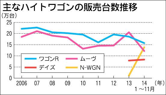 軽乗用車の主力モデル“ハイトワゴン”の販売をめぐる競争がさらに白熱化しそうだ。長らく続いたスズキ「ワゴンR」とダイハツ工業「ムーヴ」の首位争いに昨年、日産自動車「デイズ」と三菱自動車「eKワゴン」、ホンダ「N―WGN(エヌワゴン)」などが...