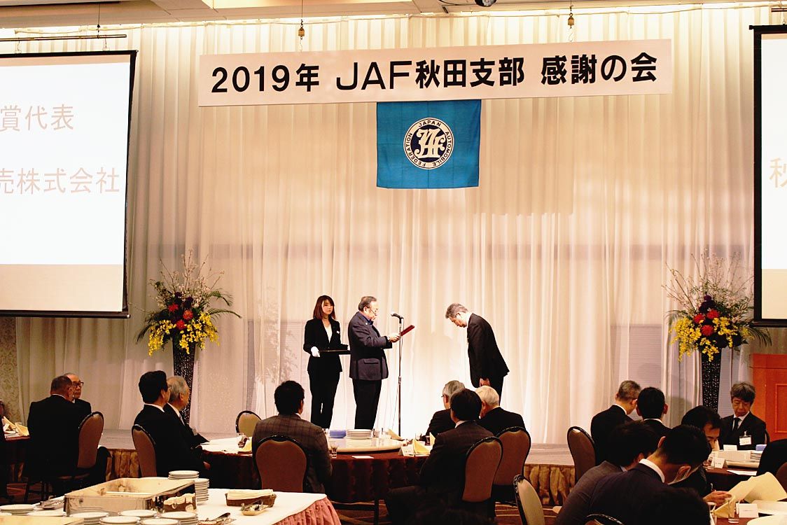 【秋田】日本自動車連盟(JAF)秋田支部(伊藤哲之支部長)は2月28日、秋田市で「2019年感謝の会」を開催した=写真。伊藤支部長やJAFの坂口正芳副会長らが出席し、19年の年間会員獲得キャンペーンで優秀な成績を収めたディーラーと拠点、社...