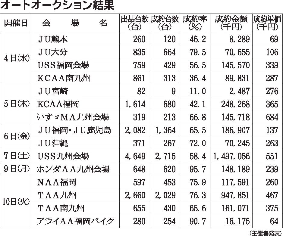 〈オートオークション結果〉