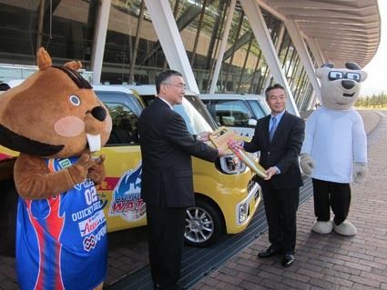 【青森】青森ダイハツモータース(松沼光男社長)はこのほど、パートナー支援するプロバスケットボールリーグ(bjリーグ)チームの「青森ワッツ」へ、「ウェイクG“SA”(スマートアシスト)」1台を無償貸与した。青森市のマエダアリーナで貸与式を実...