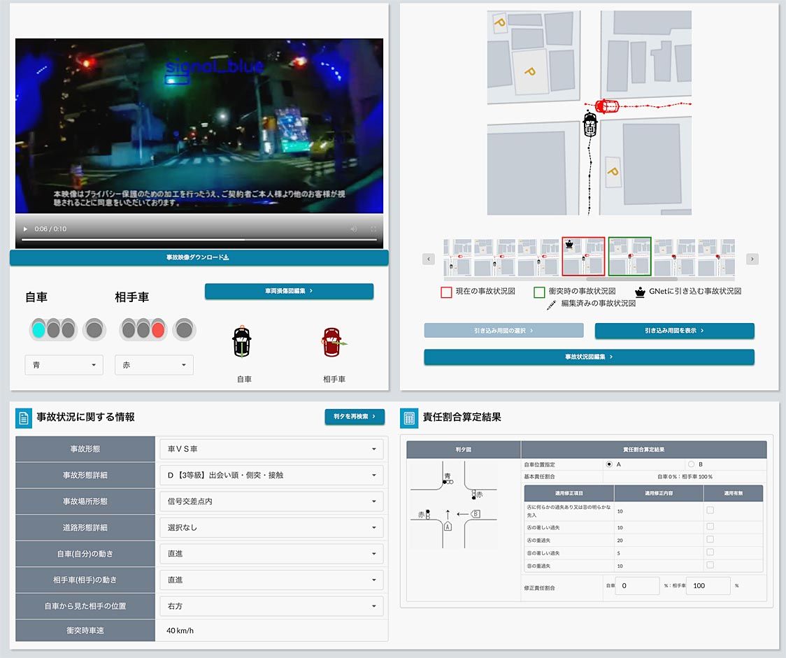 事故発生時はこれまで、契約者からのヒアリングや事故現場の確認などをもとに1週間ほどかけて事故状況をまとめ、責任割合を決定していた。新システムはドライブレコーダーの映像をAIで分析。事故状況、車両損傷、責任者割合を5分ほどで分析することが可能となった。分析内容は担当者が確認してサービスの質を担保しつつ、保険金支払いなどをスピーディに処理することを目指す。