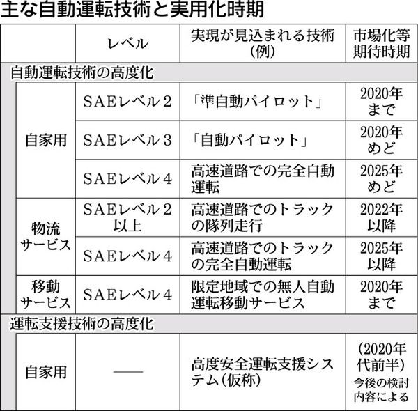 政府、官民ITS構想行程表を決定 自動運転3分野の実現時期明示