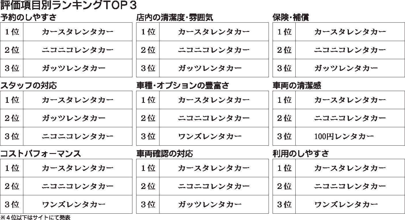 格安レンタカー顧客満足度調査 「カースタレンタカー」が首位 オリコンME