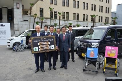 【富山】品川グループ本社(品川祐一郎社長)など同グループの7社は5月17日、品川グループの創業100周年記念事業の一環として、「スペイド」の福祉車両など車両3台と、車いすを100セット、さらに186万8千円分の図書券を、教育や医療機関など...
