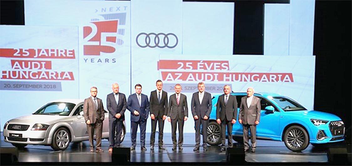 (2)アウディ社も1993年ジュール市Gyoerに進出し2018年に25周年記念式典を開催した(写真C-(7)-7A)。2018年にはアウディ・クーペTTやロードスター、カブリオ、SUVのQ3などの少数台数のモデルの乗用車を10万台生産し...