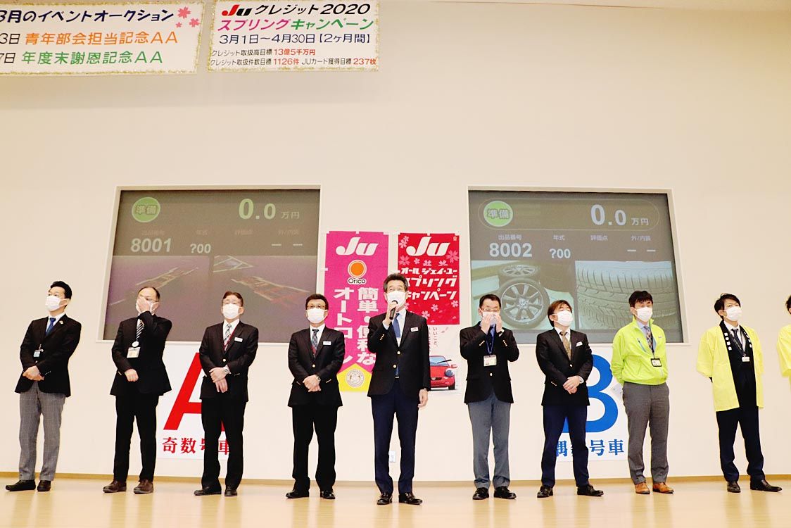 【新潟】新潟県中古自動車販売商工組合(JU新潟、海津博理事長)は、「第1778回JU新潟青年部会担当記念BIGオートオークション(AA)」を開催した=写真。コロナウイルス感染症の感染者が県内で複数人確認される中で、場内入場者に対してマスク...