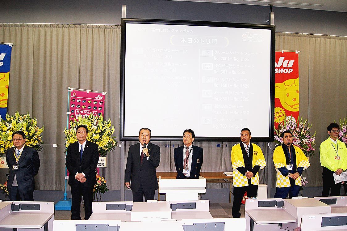 【静岡】静岡県中古自動車販売商工組合(JU静岡、小野田泰祐理事長)は10日、記念中古車オートオークション(AA)「富士山静岡ジャンボAA~協会設立54周年&青年部担当記念~」を開催した=写真。同AAは、年間6回開催する青年部担当AAの最後...