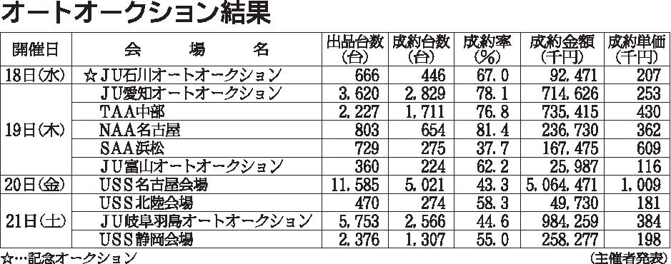 〈オートオークション結果〉