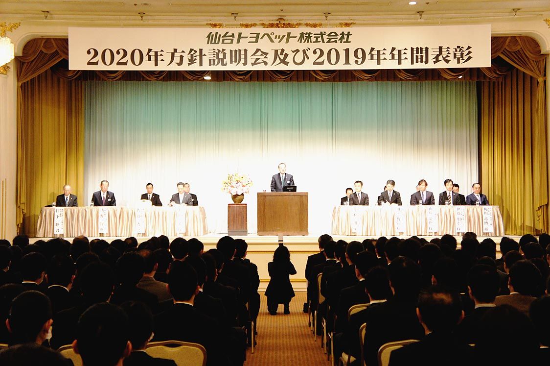 【仙台】仙台トヨペット(佐藤秀之社長)は、仙台市青葉区で「2020年方針説明会及び2019年年間表彰」を開催した=写真。亀井文行会長をはじめとする役員と社員、来賓の470人が出席し、20年度の経営方針などについて認識を深めた。また、提案活...