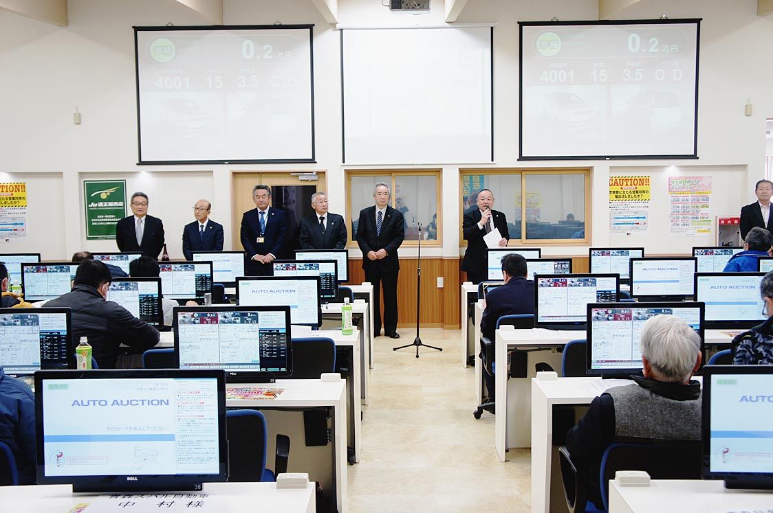 【青森】青森県中古自動車販売商工組合(JU青森、石山英二理事長)は17日、青森市の中古車オークション(AA)会場で「共有セリ機導入4周年記念AA」を開催した=写真。小売りに適した良質車などが出品され、会員の関心を集めた。会場には、東北各地...